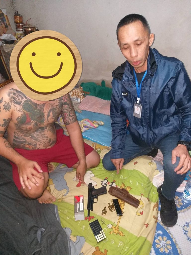 ข้อหา : มีอาวุธปืนและเครื่องกระสุนปืนไว้ในความครอบครองโดยไม่ได้รับอนุญาต ตรวจยึดรถยนต์เก๋ง ยี่ห้อ BMW สีขาวรุ่น 523I ไม่ติดแผ่นป้ายหมายเลขทะเบียน ไม่มีหลักฐานคู่มือทะเบียนรถให้ตรวจสอบ จึงมีเหตุอันควรสงสัยว่า จะได้มาจากการกระทำความผิด