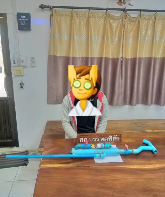 พร้อมด้วยของกลาง อาวุธปืนอัดแก๊สแบบไทยประดิษฐ์ จำนวน 1 กระบอก